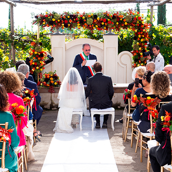 La nostra terza proposta per la cena è Il Giardino dì Inverno. Questa area è interamente coperta, un luogo irrorato dalla luce del sole e circondato da piante che la rendono raffinata e meravigliosa, un piccolo angolo di paradiso al coperto. Il Giardino d’Inverno si può trasformare, attraverso le aperture laterali, in un unico ambiente con gli spazi esterni per essere completamente abbracciati dal verde. In caso di condizioni meteo avverse il Giardino d’Inverno risulta essere un’ottima scelta per tutte le nostre spose. Il punto focale dell’area è proprio la nostra Cascata, il flusso dell’acqua che scorre crea un meraviglioso spettacolo visivo e sonoro. L’ inconfondibile fragore e il mormorio dell'acqua, riempie l'aria circostante di un piacevole e rilassante rumore bianco. Le diverse piante da fiore che la circondano creano una cornice naturale con tocchi di rosa, bianco e rosso. I roseti, poi, con le vigne risaltano la splendida scenografia, come non la si può scegliere per il taglio torta o per la celebrazione del rito matrimoniale? Per rendere confortevole l’area Cascata si dispongono divani e tavoli per gli ospiti e l’angolo per il momento finale delle bomboniere. Il Casale di Bosco de Medici è anche sede comunale del Comune di Pompei per la celebrazione di matrimoni civili, un valore aggiunto che unisce l’importante ruolo amministrativo della comunità al significato profondo e intimo di un matrimonio civile. Questa combinazione crea una connessione speciale tra la cerimonia e la nostra location, aggiungendo il tocco di autenticità e significato al giorno speciale degli sposi.